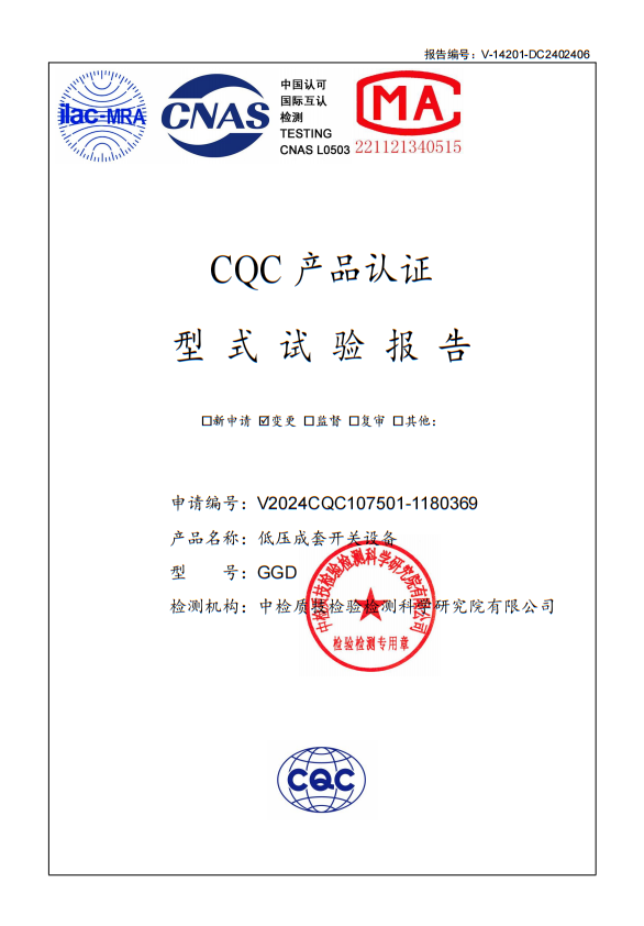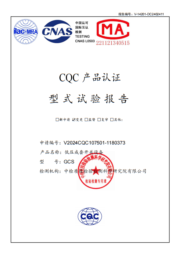 MNS低壓配電柜試驗報告