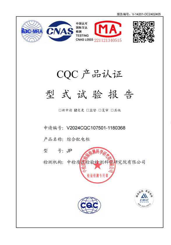 JP綜合配電柜試驗報告